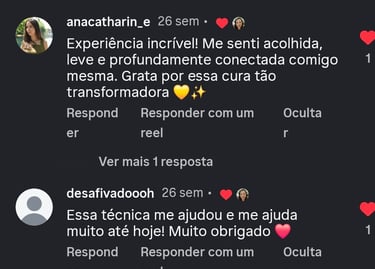 Mergulhei em processos profundos de cura, formações em EFT, Reiki, Radiestesia e estudos de desenvolvimento pessoal.